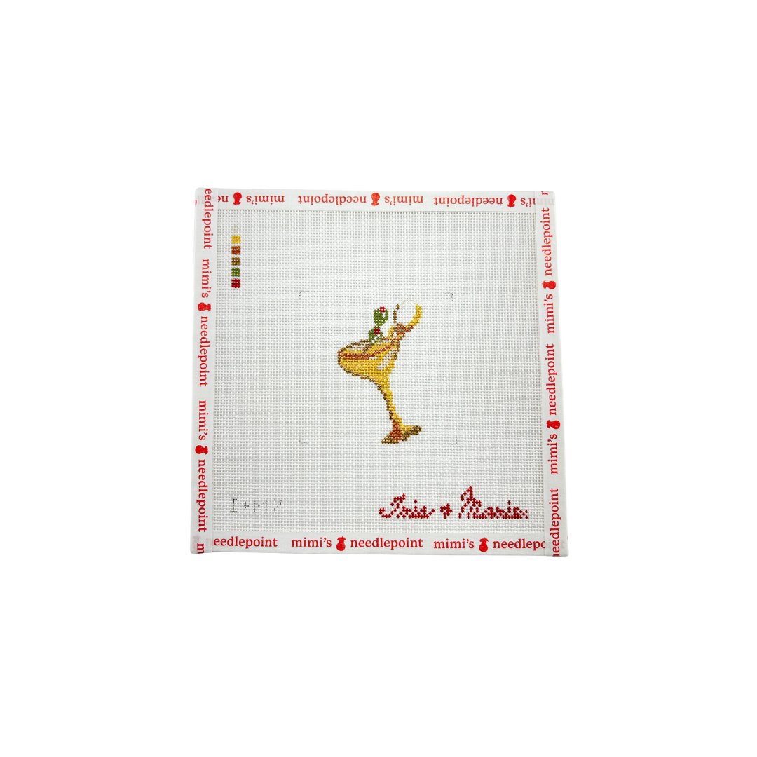- 18-Count Mesh Hand-Painted Needlepoint Canvas featuring a Charm of a Dirty Martini - artwork by Shana Wanco from Iris and Marie