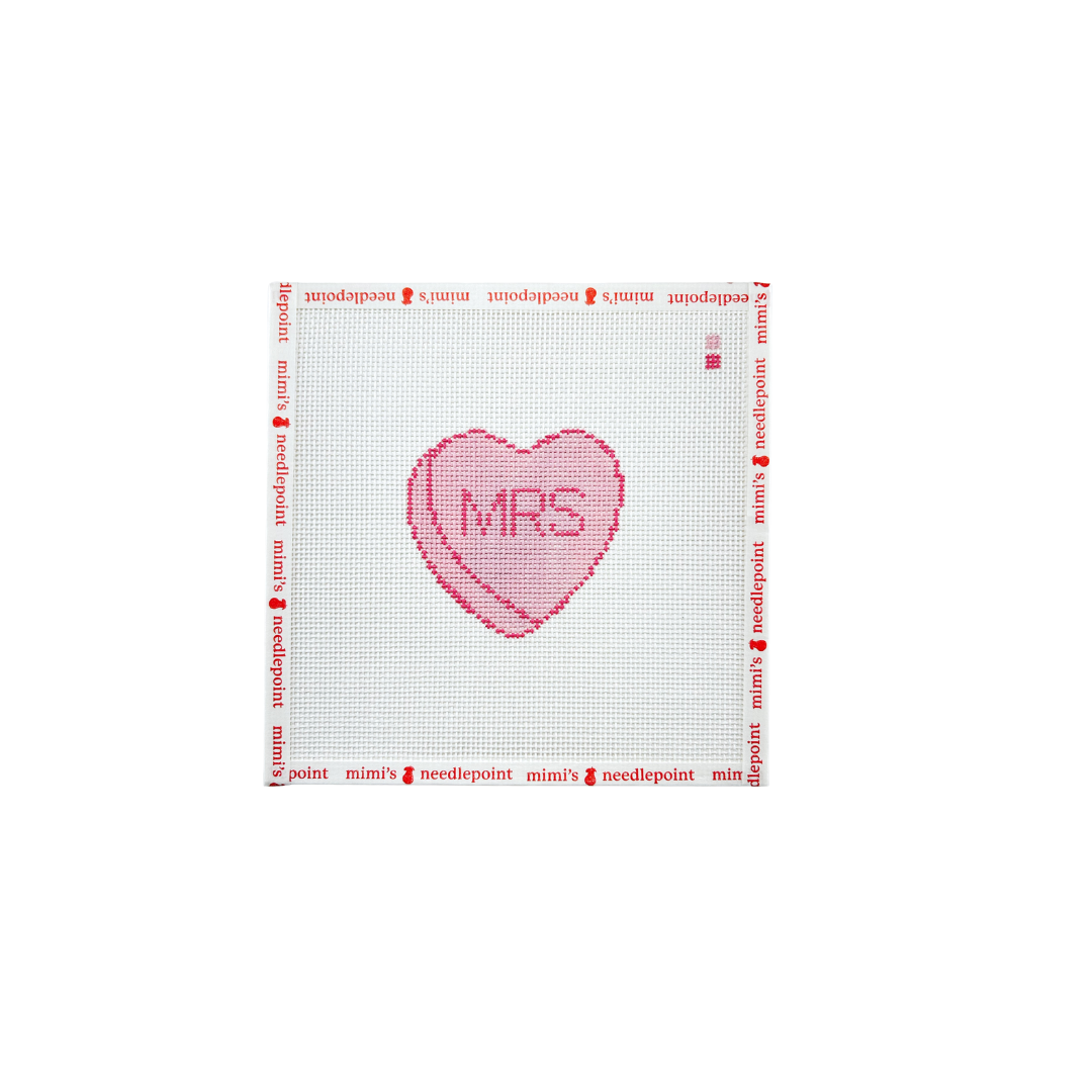 Mimi's Needlepoint Mrs. Conversation Heart hand-painted needlepoint canvas.