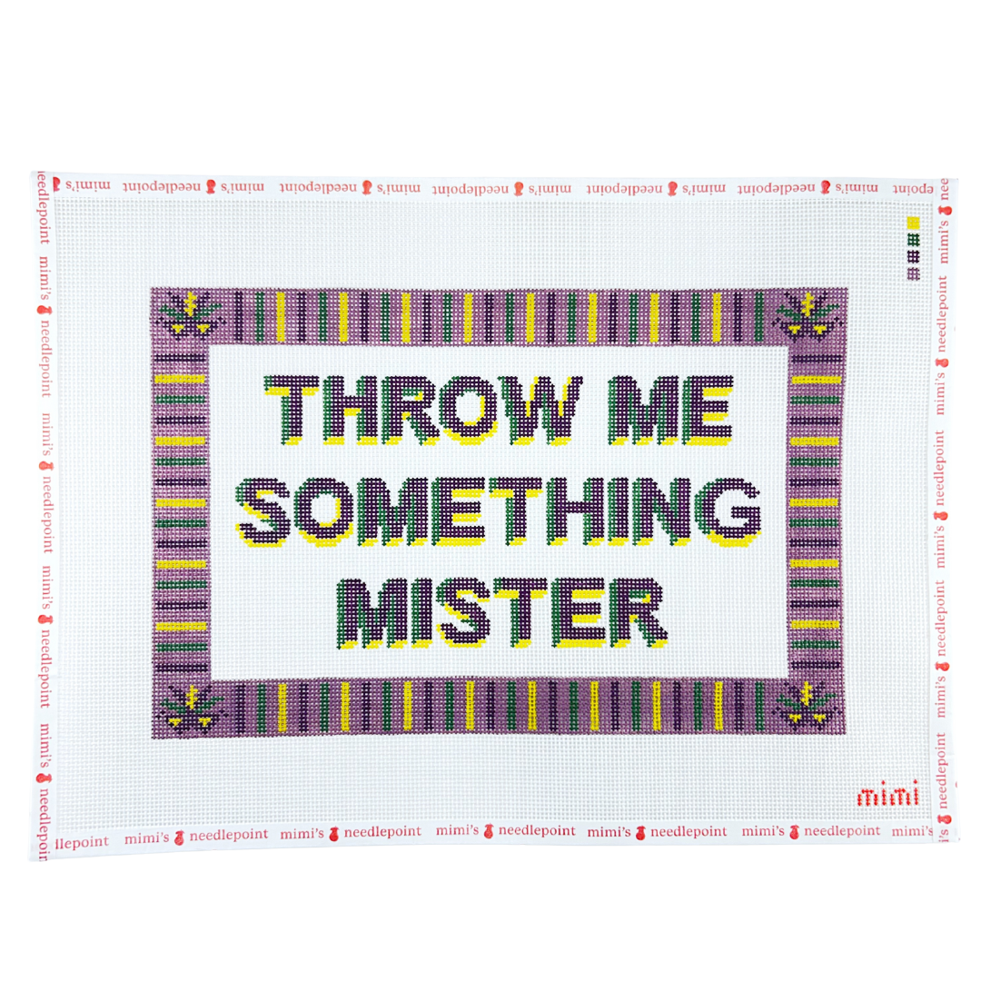 Mimi's Needlepoint Throw Me Something Mister Mardi Gras hand-painted needlepoint canvas.